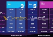 北京时间 3 月 30 日消息,英特尔将推出 5 款 Arc 移动端显卡:A770M、A730M、A550M、A370M 和 A350M。现在 videocardz 拿到一份资料,证实了英特尔独显的一些参数。小编了解到,英特尔 PPT 表明 Arc 3 系列将从明天开售,而 Arc 5 和 Arc