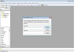 3、打开EditPlus会弹出注册页面。将刚才输的用户名和生成的注册码分别填入对应的框中,并点击register,重启软件完成注册。